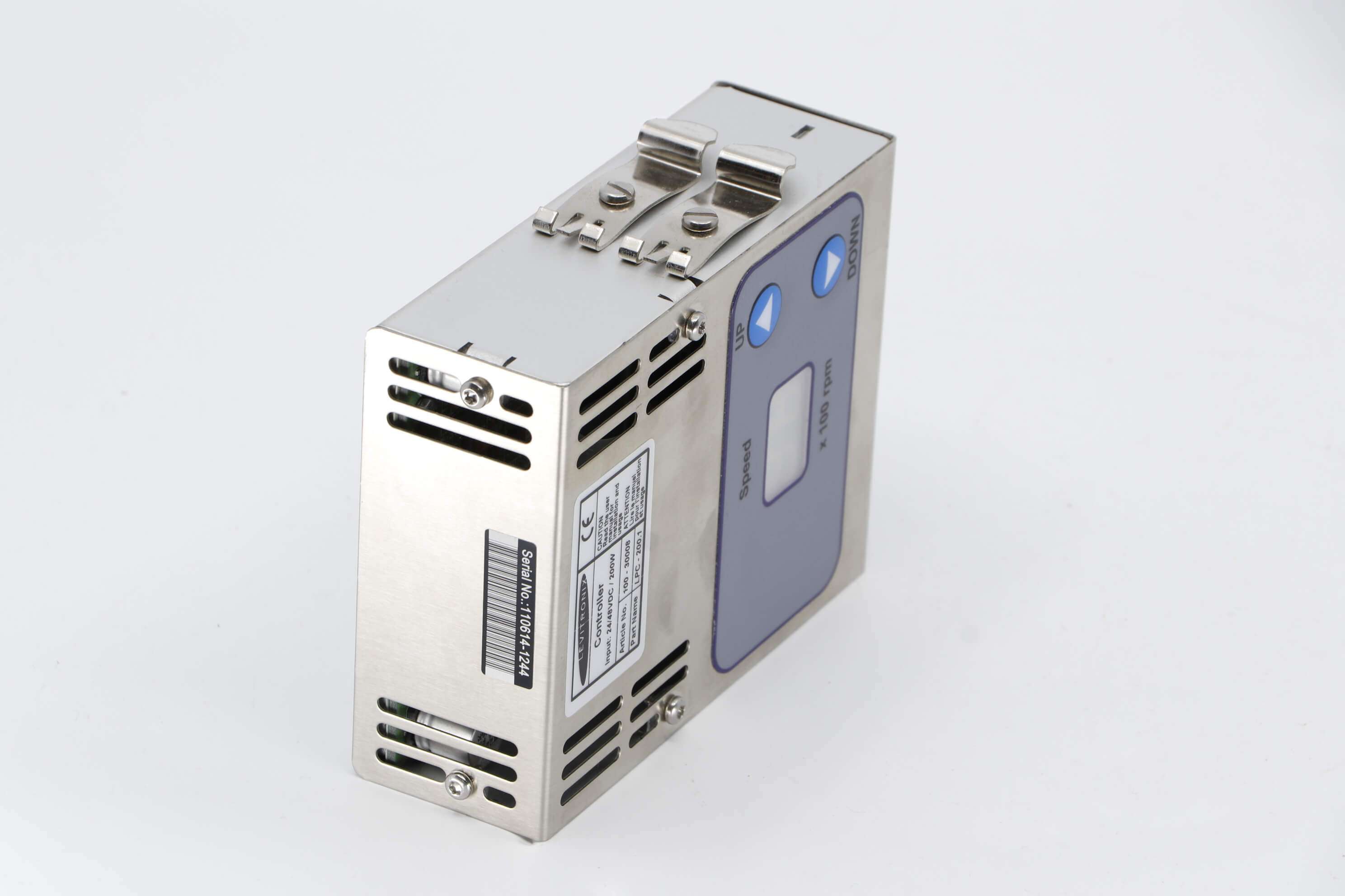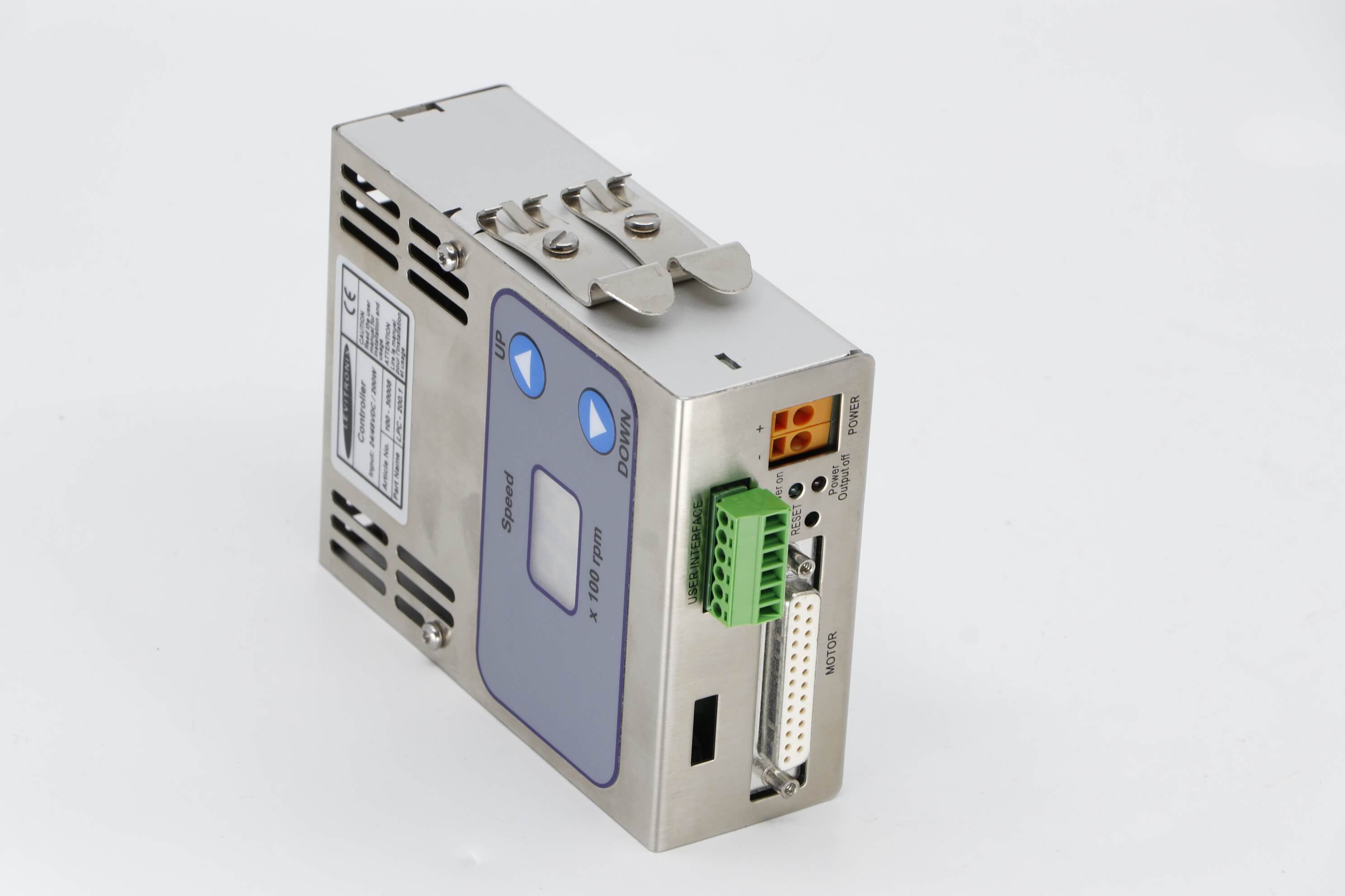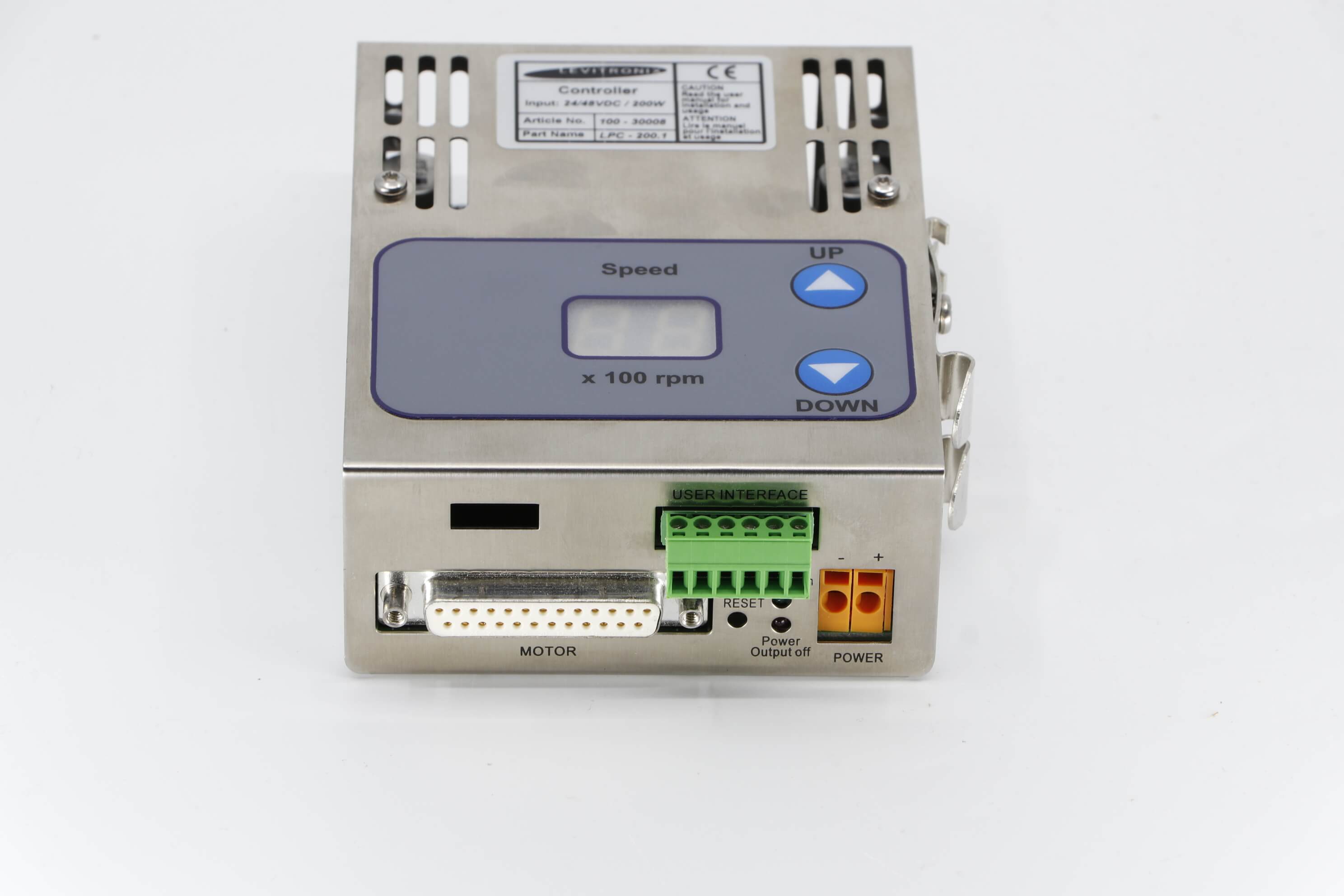 The Controller has an integrated user panel that allows the operator to set the speed manually. The speed is automatically stored in the internal EEPROM of the controller. As an option, the speed can also be set with an analog signal.
